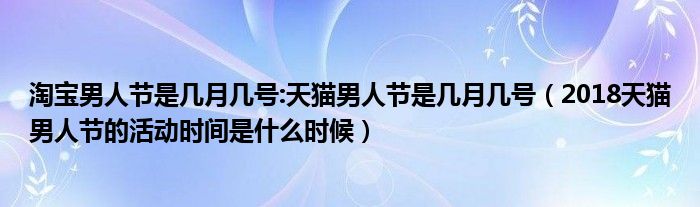 大家好,綜合小編來為大家講解下。淘寶男人節是幾月幾號:天貓男人節是幾月幾號,2018天貓男人節的活動時間是什么時候很多人還不知道,現在讓我們一起來看看吧!