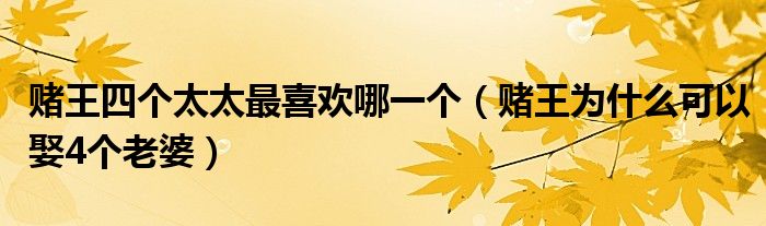大家好,綜合小編來為大家講解下。賭王四個太太最喜歡哪一個,賭王為什么可以娶4個老婆很多人還不知道,現在讓我們一起來看看吧!