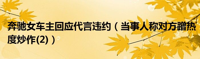 大家好,綜合小編來為大家講解下。奔馳女車主回應代言違約,當事人稱對方蹭熱度炒作(2)很多人還不知道,現在讓我們一起來看看吧!