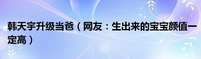 大家好,綜合小編來為大家講解下。韓天宇升級當爸,網友:生出來的寶寶顏值一定高很多人還不知道,現在讓我們一起來看看吧!