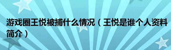 大家好,綜合小編來為大家講解下。游戲圈王悅被捕什么情況,王悅是誰個人資料簡介很多人還不知道,現(xiàn)在讓我們一起來看看吧!