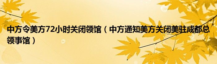 大家好,綜合小編來為大家講解下。中方令美方72小時關閉領館,中方通知美方關閉美駐成都總領事館很多人還不知道,現在讓我們一起來看看吧!