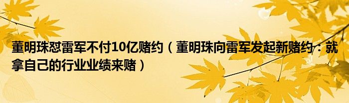 大家好,綜合小編來為大家講解下。董明珠懟雷軍不付10億賭約,董明珠向雷軍發起新賭約:就拿自己的行業業績來賭很多人還不知道,現在讓我們一起來看看吧!