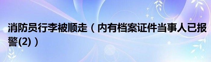 大家好,綜合小編來為大家講解下。消防員行李被順走,內(nèi)有檔案證件當(dāng)事人已報(bào)警(2)很多人還不知道,現(xiàn)在讓我們一起來看看吧!