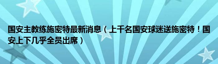 大家好,綜合小編來為大家講解下。國安主教練施密特最新消息,上千名國安球迷送施密特!國安上下幾乎全員出席很多人還不知道,現在讓我們一起來看看吧!