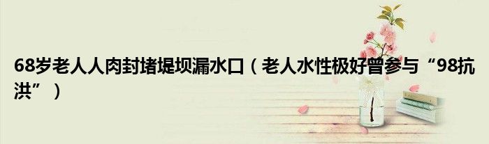 大家好,綜合小編來為大家講解下。68歲老人人肉封堵堤壩漏水口,老人水性極好曾參與“98抗洪”很多人還不知道,現(xiàn)在讓我們一起來看看吧!