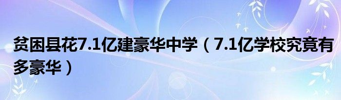 大家好,綜合小編來(lái)為大家講解下。貧困縣花7.1億建豪華中學(xué),7.1億學(xué)校究竟有多豪華很多人還不知道,現(xiàn)在讓我們一起來(lái)看看吧!