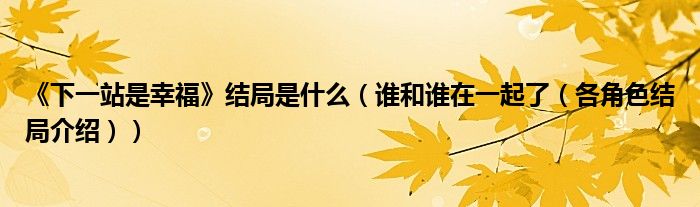 大家好,綜合小編來為大家講解下。《下一站是幸福》結局是什么,誰和誰在一起了,各角色結局介紹很多人還不知道,現在讓我們一起來看看吧!