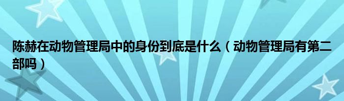 大家好,綜合小編來為大家講解下。陳赫在動物管理局中的身份到底是什么,動物管理局有第二部嗎很多人還不知道,現在讓我們一起來看看吧!
