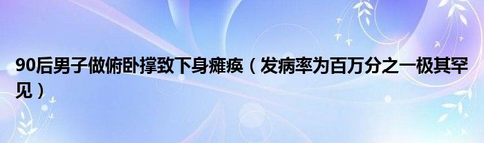 大家好,綜合小編來為大家講解下。90后男子做俯臥撐致下身癱瘓,發病率為百萬分之一極其罕見很多人還不知道,現在讓我們一起來看看吧!