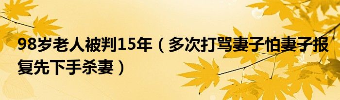 大家好,綜合小編來為大家講解下。98歲老人被判15年,多次打罵妻子怕妻子報復先下手殺妻很多人還不知道,現在讓我們一起來看看吧!