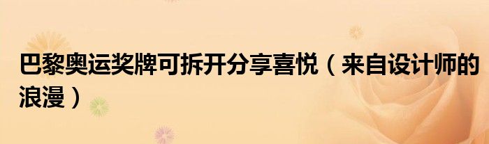 大家好,綜合小編來為大家講解下。巴黎奧運獎牌可拆開分享喜悅,來自設計師的浪漫很多人還不知道,現在讓我們一起來看看吧!