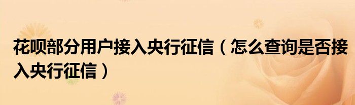 大家好,綜合小編來為大家講解下。花唄部分用戶接入央行征信,怎么查詢是否接入央行征信很多人還不知道,現在讓我們一起來看看吧!