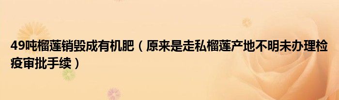 大家好,綜合小編來為大家講解下。49噸榴蓮銷毀成有機肥,原來是走私榴蓮產地不明未辦理檢疫審批手續很多人還不知道,現在讓我們一起來看看吧!