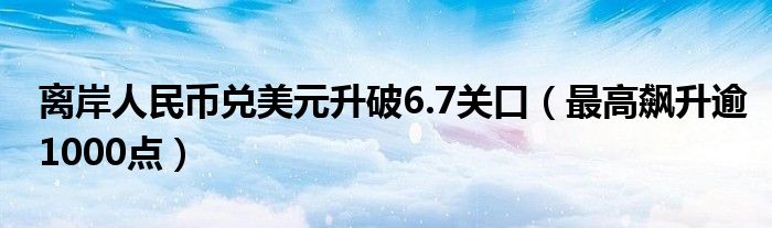 大家好,綜合小編來為大家講解下。離岸人民幣兌美元升破6.7關(guān)口,最高飆升逾1000點(diǎn)很多人還不知道,現(xiàn)在讓我們一起來看看吧!