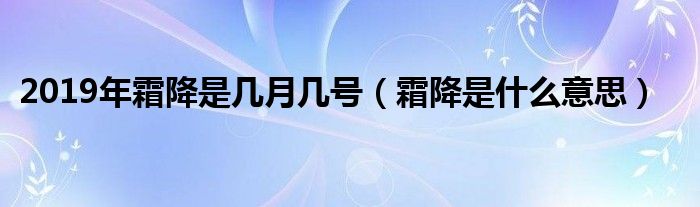 大家好,綜合小編來為大家講解下。2019年霜降是幾月幾號,霜降是什么意思很多人還不知道,現(xiàn)在讓我們一起來看看吧!