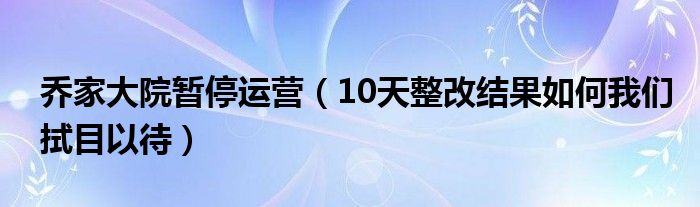 大家好,綜合小編來為大家講解下。喬家大院暫停運營,10天整改結果如何我們拭目以待很多人還不知道,現在讓我們一起來看看吧!