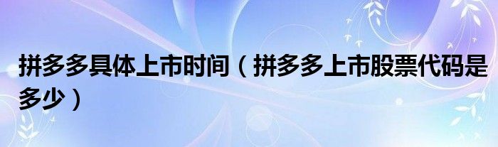 大家好,綜合小編來為大家講解下。拼多多具體上市時間,拼多多上市股票代碼是多少很多人還不知道,現(xiàn)在讓我們一起來看看吧!