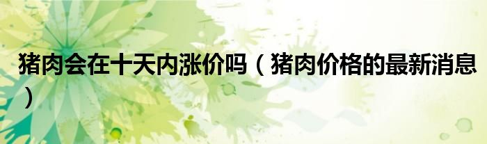 大家好,綜合小編來為大家講解下。豬肉會在十天內漲價嗎,豬肉價格的最新消息很多人還不知道,現在讓我們一起來看看吧!