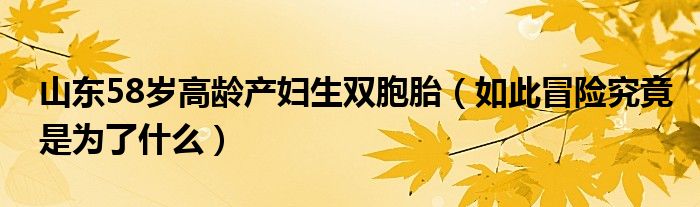 大家好,綜合小編來(lái)為大家講解下。山東58歲高齡產(chǎn)婦生雙胞胎,如此冒險(xiǎn)究竟是為了什么很多人還不知道,現(xiàn)在讓我們一起來(lái)看看吧!