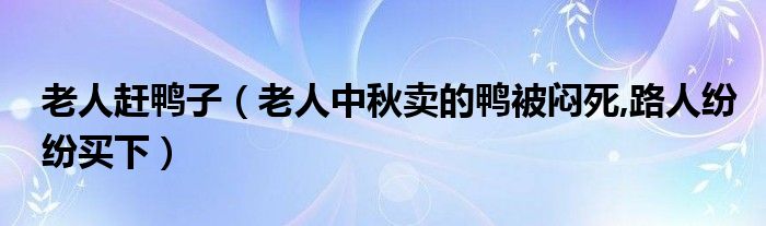 大家好,綜合小編來為大家講解下。老人趕鴨子,老人中秋賣的鴨被悶死,路人紛紛買下很多人還不知道,現在讓我們一起來看看吧!