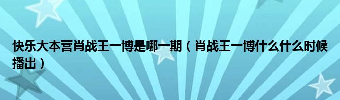 大家好,綜合小編來為大家講解下。快樂大本營肖戰王一博是哪一期,肖戰王一博什么什么時候播出很多人還不知道,現在讓我們一起來看看吧!