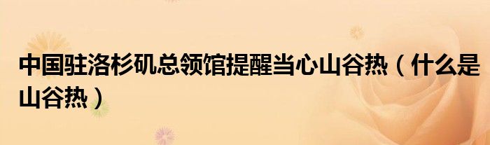 大家好,綜合小編來為大家講解下。中國駐洛杉磯總領館提醒當心山谷熱,什么是山谷熱很多人還不知道,現在讓我們一起來看看吧!