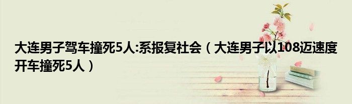 大家好,綜合小編來(lái)為大家講解下。大連男子駕車撞死5人:系報(bào)復(fù)社會(huì),大連男子以108邁速度開(kāi)車撞死5人很多人還不知道,現(xiàn)在讓我們一起來(lái)看看吧!