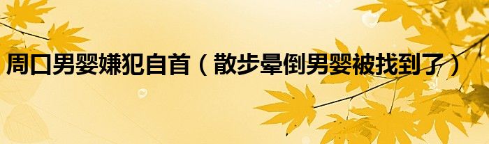 大家好,綜合小編來(lái)為大家講解下。周口男嬰嫌犯自首,散步暈倒男嬰被找到了很多人還不知道,現(xiàn)在讓我們一起來(lái)看看吧!