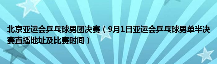 大家好,綜合小編來為大家講解下。北京亞運會乒乓球男團決賽,9月1日亞運會乒乓球男單半決賽直播地址及比賽時間很多人還不知道,現在讓我們一起來看看吧!