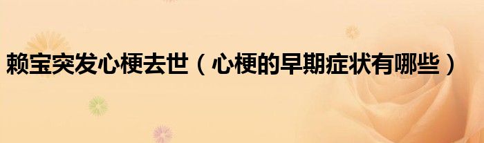 大家好,綜合小編來為大家講解下。賴寶突發心梗去世,心梗的早期癥狀有哪些很多人還不知道,現在讓我們一起來看看吧!