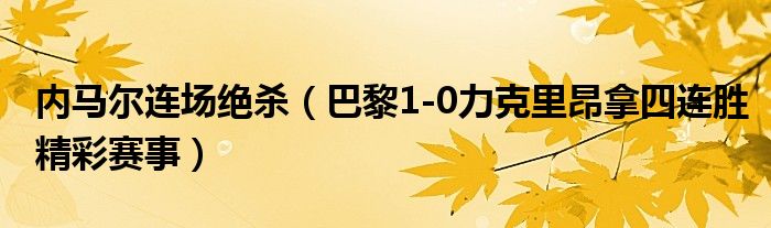 大家好,綜合小編來為大家講解下。內(nèi)馬爾連場絕殺,巴黎1-0力克里昂拿四連勝精彩賽事很多人還不知道,現(xiàn)在讓我們一起來看看吧!