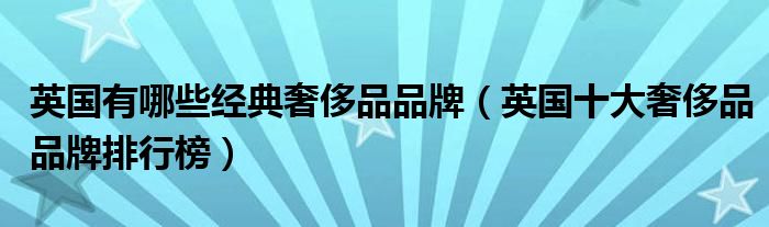 大家好,綜合小編來為大家講解下。英國有哪些經典奢侈品品牌,英國十大奢侈品品牌排行榜很多人還不知道,現在讓我們一起來看看吧!