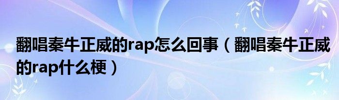 大家好,綜合小編來為大家講解下。翻唱秦牛正威的rap怎么回事,翻唱秦牛正威的rap什么梗很多人還不知道,現在讓我們一起來看看吧!