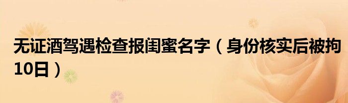 大家好,綜合小編來為大家講解下。無證酒駕遇檢查報閨蜜名字,身份核實(shí)后被拘10日很多人還不知道,現(xiàn)在讓我們一起來看看吧!