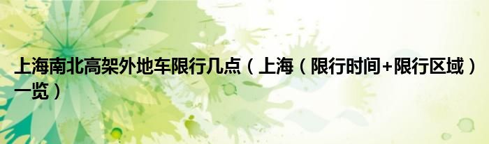 大家好,綜合小編來為大家講解下。上海南北高架外地車限行幾點(diǎn),上海,限行時間+限行區(qū)域一覽很多人還不知道,現(xiàn)在讓我們一起來看看吧!