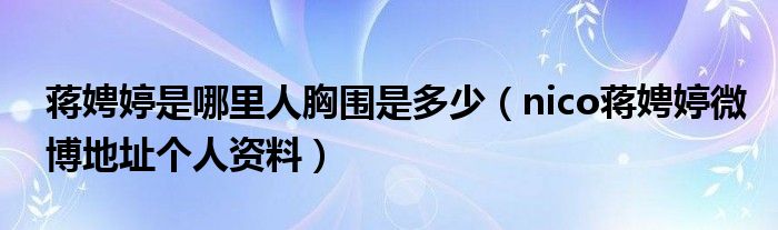 大家好,綜合小編來為大家講解下。蔣娉婷是哪里人胸圍是多少,nico蔣娉婷微博地址個人資料很多人還不知道,現在讓我們一起來看看吧!