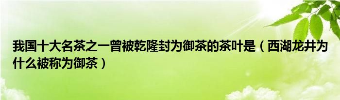 大家好,綜合小編來(lái)為大家講解下。我國(guó)十大名茶之一曾被乾隆封為御茶的茶葉是,西湖龍井為什么被稱為御茶很多人還不知道,現(xiàn)在讓我們一起來(lái)看看吧!