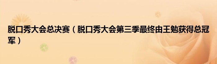 9月23日晚間,綜藝《脫口秀大會》第三季正式舉辦總決賽,經過包括王建國、呼蘭、王勉、楊蒙恩、李雪琴、楊笠在內六位選手的比拼,最終由王勉獲得總冠軍。