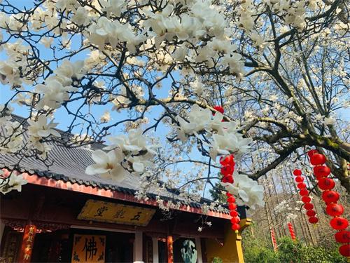隨著氣溫逐漸的回暖,迎來了春暖花開的季節(jié),正是人們出門旅行的最好時機(jī),現(xiàn)在在杭州的法喜寺內(nèi)有有一株500歲的玉蘭正在開花盛放。這株玉蘭有著500多年的歷史,高達(dá)12米,可以明顯看到枝頭的花正在綻放,花香飄在寺內(nèi),一番春意盎然的景色。據(jù)了解這株歷史悠久的玉蘭花期大概10天左右。如果錯過花期,需要再等上一年才能觀看。