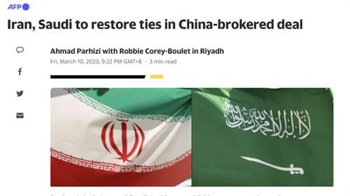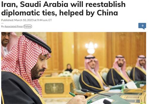 三方所簽署的這項協議,是在北京召開兩會期間所達成的,美聯社認為,中國在趁著美國從大中東地區慢慢撤軍之際,在海灣地區與阿拉伯的國家在外交問題上取得了非常重大的勝利。