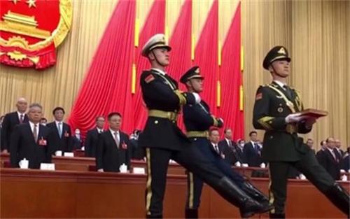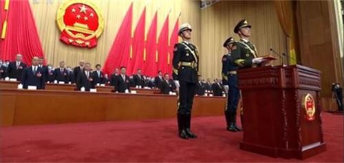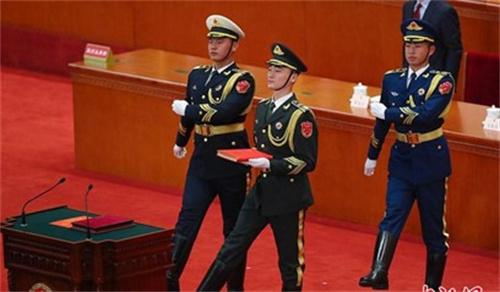 中華人民共和國第十四屆全國人民代表大會的第1次會議憲法宣誓儀式,于3月10日在北京人民大會堂舉行。由三名禮兵負責護送《中華人民共和國憲法》入場。