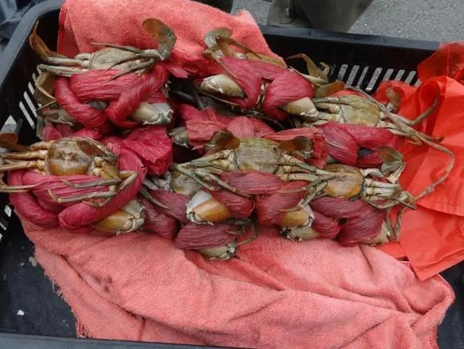 相信很多人在市場上買螃蟹的時候都遇到一種情況,那就是自己買到手的螃蟹,外面裹著厚厚的麻繩,或者是綁著很厚的皮筋。到家之后如果將這些皮筋和麻繩去除,原本螃蟹的重量其實并沒有多少。