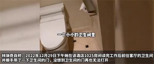 北京時間3月13號,女演員林琳就發布了一個視頻投訴麗思卡爾頓酒店,危害其人身安全,在視頻中林琳表示自己在2022年的12月29號下午3點左右,她在酒店的1025房間和工作人員談完工作之后就前往房間的衛生間,進入衛生間的時,隨手帶了一下衛生間的門,在視頻中她也著重地表示自己只是隨手帶了一下而非鎖上,但是沒有想到,這一個無意的舉動,導致衛生間的門再也沒有辦法打開,而當時他的手機是在客廳里沒有辦法使用手機聯系酒店的工作人員,而衛生間唯一一個能夠和外界聯系的壁掛電話也是壞的,林琳表示衛生間除了一個壁掛電話之外,再也沒有別的應急報警裝置。而這個壁掛電話又是壞的,她的手機又在客廳,導致她沒有辦法聯系酒店的工作人員,她在衛生間內不斷的敲門砸墻,大聲呼喊,都沒有引起隔壁工作人員以及隔壁房間的注意。