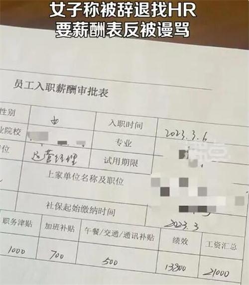 3月15日,在浙江杭州工作的陳女士表示,自己在3月6日入職小白文化傳媒有限公司,在入職前公司發的offer中寫明試用期的薪資是21k,結果在入職之后的合同中只有4k。工作7天后公司認為態度不好,想對陳女士調崗調薪,遭到陳女士的拒絕后竟然將她直接辭退,雙方在調解中發生了爭執,隨后報了警。