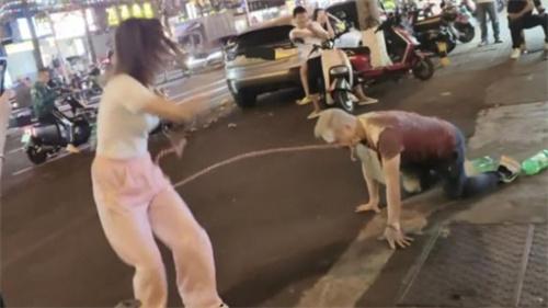 視頻的播放可以明確的看到一位女子手里牽著鐵鏈,鎖著男子的脖子,然后男子跪在地上,由女子牽著進(jìn)行爬行,時不時女子還用鐵鏈抽打男子,此外還有另一段視頻顯示男子脖子上的鐵鏈取下來之后,在馬路的中央,一個凳子上,雙手彎腰扶著,另外女子還是用手中的鐵鏈向男子抽打,男子還非常配合的發(fā)出聲音,女子抽打過程當(dāng)中嘴里還不停的說:““打你,一定要打你,一定要打掉你,噼里啪啦打你”,與此同時手機(jī)就放在支架上開著直播,將全程發(fā)生的事情全部的現(xiàn)場直播,女子還和其他的網(wǎng)友進(jìn)行互動。