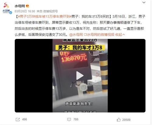 一名男子開著3萬(wàn)元的汽車,從停車場(chǎng)開出被停車場(chǎng)收取了13萬(wàn)元的停車費(fèi),這件事在網(wǎng)絡(luò)上引起了廣泛的關(guān)注。男子在看到如此高昂的停車費(fèi)用之后,表示被嚇了一跳。當(dāng)時(shí)以為是車型不對(duì),但是在嘗試了好幾遍之后,仍然顯示的是13萬(wàn)多元,于是和保安進(jìn)行溝通,最終只交了30元。