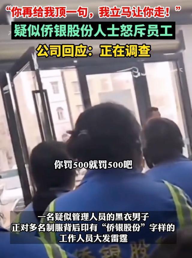 近日一段視頻在網絡上引發網友熱議,視頻中一名男子大聲呵斥著一名員工,“你再頂一句,立馬就走人”,同時還要懲罰這名員工500元。在視頻中可以看到員工的制服上都標有“銀橋股份”,天眼查顯示這個企業的注冊地是廣州市從化區,目前銀橋城市管理股份有限公司已經介入調查。