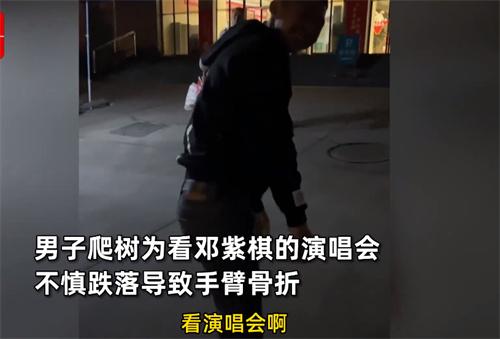 3月24日,四川瀘州一名男子想要觀看鄧紫棋的演唱會,由于想要省下演唱會門票于是選擇爬上場館外大樹去觀看演唱會,結果在下樹的時候不慎從樹上跌落導致手臂骨折,前往醫院診斷預計要花費一萬多,事后男子表示為了省下1千塊反而花了一萬多,以后看演唱會還是要從正常渠道購買門票去觀看。