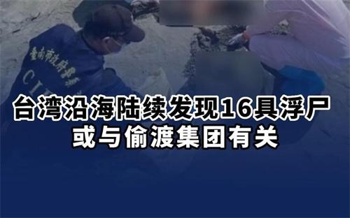 臺灣地區臺中往臺南一直到高雄沿海自3月以來陸續發現了16具浮尸,目前懷疑這一些服飾很可能是偷渡集團在海上丟包所導致的。臺海巡署目前正在針對此事進行調查。